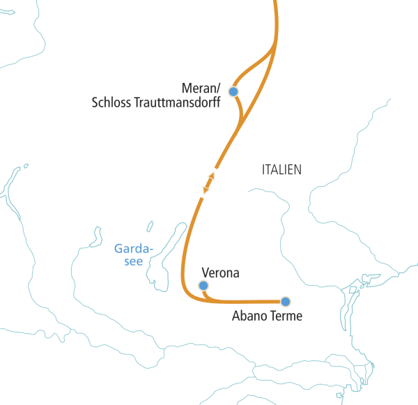 Nach dem Frühstück heißt es Abschied nehmen von Venetien. Auf der Rückreise legen Sie einen Stopp in Meran ein, der beliebten Kurstadt an der Passer. Anschließend Weiterfahrt zur Zwischenübernachtung im Raum München.