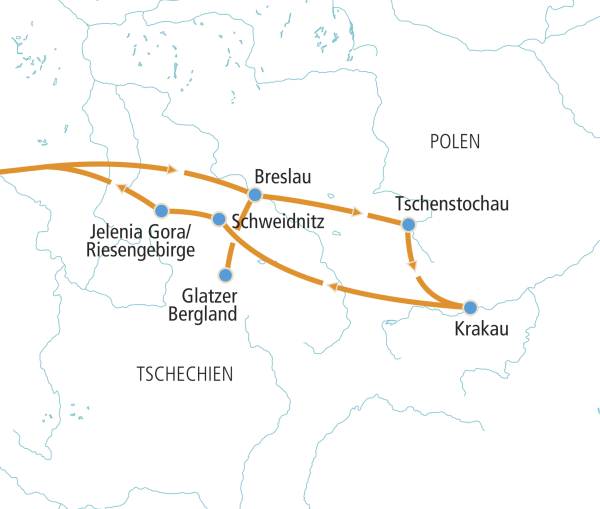 Erleben Sie die kulturellen und landschaftlichen Perlen Schlesiens auf einer unvergesslichen Busreise! Entdecken Sie Breslau, das charmante Herz Schlesiens mit seiner reichen Geschichte und den beeindruckenden gotischen Bauwerken. Lassen Sie sich von der malerischen Altstadt von Glatz und der majestätischen Festung verzaubern. Auf Ihrer Reise erwartet Sie zudem der spirituelle Höhepunkt Polens, Tschenstochau, wo das Gnadenbild der Schwarzen Madonna jährlich Millionen von Pilgern anzieht. In Krakau, der ehemaligen Königsstadt, werden Sie in die Pracht des Mittelalters eintauchen und die kulturelle Vielfalt des jüdischen Viertels Kazimierz erkunden. Abschließend führt Ihre Reise durch das idyllische Riesengebirge, wo Sie die Friedenskirche in Schweidnitz und die bezaubernde Stadt Hirschberg entdecken.