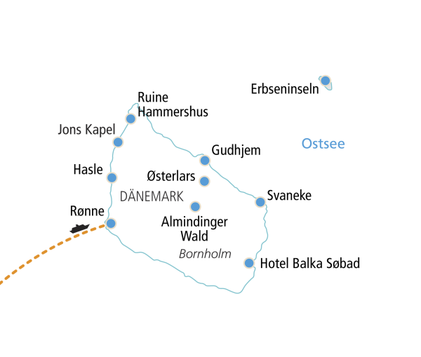 Nach dem Frühstück heißt es Abschied nehmen von Bornholm. Mit der Fähre geht es zurück nach Sassnitz auf Rügen. Von dort treten Sie die Heimreise an – mit vielen schönen Erinnerungen an Dänemarks Sonneninsel im Gepäck.