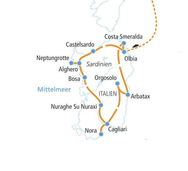 Traumhafte Sandstrände, sanfte Wellen und smaragdgrünes Meer im Kontrast zu wilden Bergpanoramen und unberührter Natur – Sardinien ist ein wahres Paradies. Diese faszinierende Insel vereint mediterrane Leichtigkeit, ursprüngliche Landschaften und Jahrtausende alte Geschichte. Vom Norden bis in den Süden führt Sie diese exklusive Rundreise zu den schönsten Küsten, charmanten Städten und geheimnisvollen Zeugnissen der Nuraghenkultur. Lassen Sie sich verzaubern vom Flair der Mittelmeerinsel, die seit jeher als das „Juwel Italiens“ gilt.