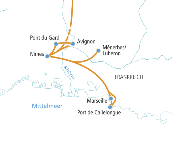 Es erwartet Sie Marseille, eine der ältesten Städte Frankreichs. Während einer Stadtführung sehen Sie das historische Viertel „Le Panier“ mit seinen engen Gassen. Von der Basilika Notre-Dame genießen Sie einen herrlichen Blick über Stadt und Meer. Am Nachmittag fahren Sie entlang der Küstenstraße in Richtung der wildromantischen Calanques. Ziel ist Port de Callelongue, das letzte kleine Fischerdorf vor den berühmten Kalksteinbuchten.