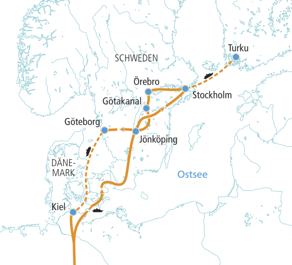 Entlang des tiefblauen Vätternsees geht es weiter in den Norden nach Stockholm. Bei einer geführten Stadtrundfahrt entdecken Sie das Königsschloss, die Altstadt Gamla Stan, die Stadshuset und die elegante Uferpromenade. Danach bleibt Zeit für eigene Erkundungen – vielleicht im ABBA- oder Vasamuseum. Am Abend erwartet Sie ein unvergessliches Erlebnis: Ihre Minikreuzfahrt durch die Stockholmer Schären nach Turku. Während die Sonne über den 30 000 Inseln versinkt, genießen Sie skandinavisches Lebensgefühl pur.