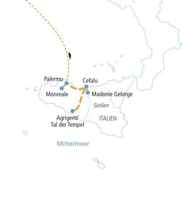 Tauchen Sie ein in das bunte Treiben Palermos: lebendige Märkte, arabisch-normannische Architektur und der prachtvolle Normannenpalast erzählen von einer reichen Vergangenheit. Anschließend besuchen Sie Monreale, wo Sie der prachtvolle Dom mit seinen goldglänzenden Mosaiken und der stilvolle Kreuzgang des Klosters in Staunen versetzen – ein Meisterwerk normannischer Baukunst.